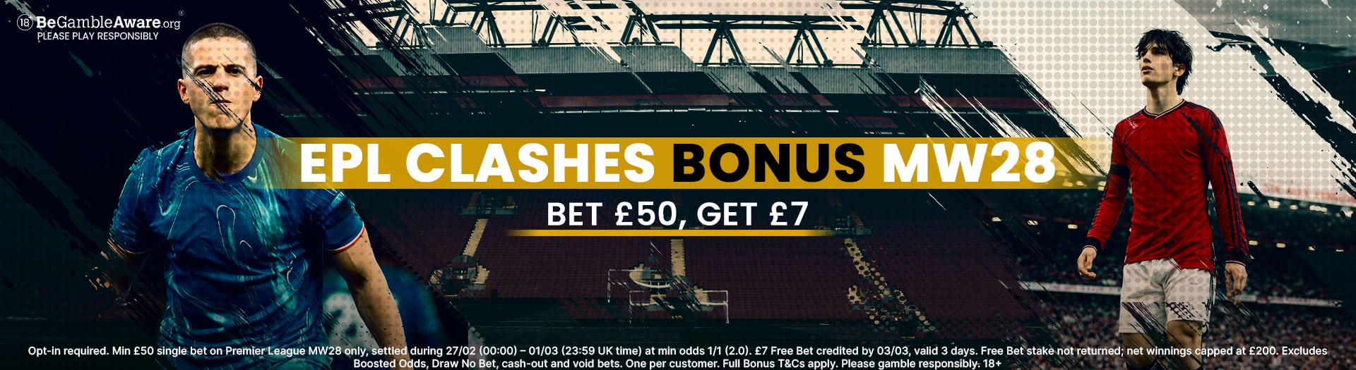 2. Place min. £50 SINGLE bet on a Premier League Matchweek 28 fixture