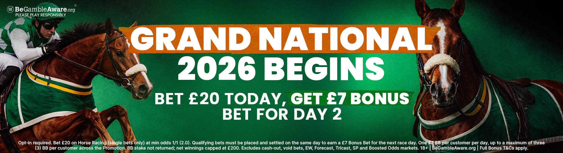 • Grand National Day 1. Qualifying on 09/04/2026 earns a £7 Bonus Bet on 10/04/2026