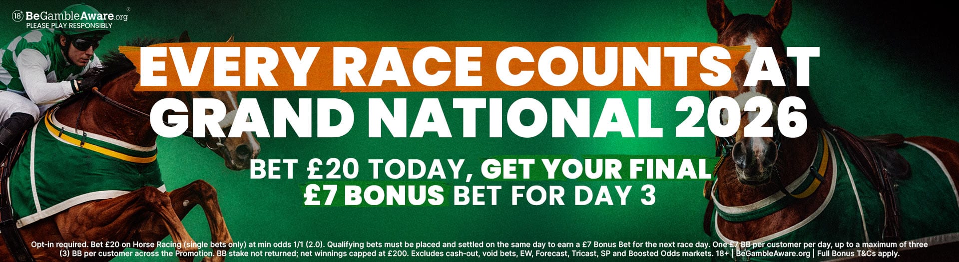 • Grand National Day 2. Qualifying on 10/04/2026 earns a £7 Bonus Bet on 11/04/2026