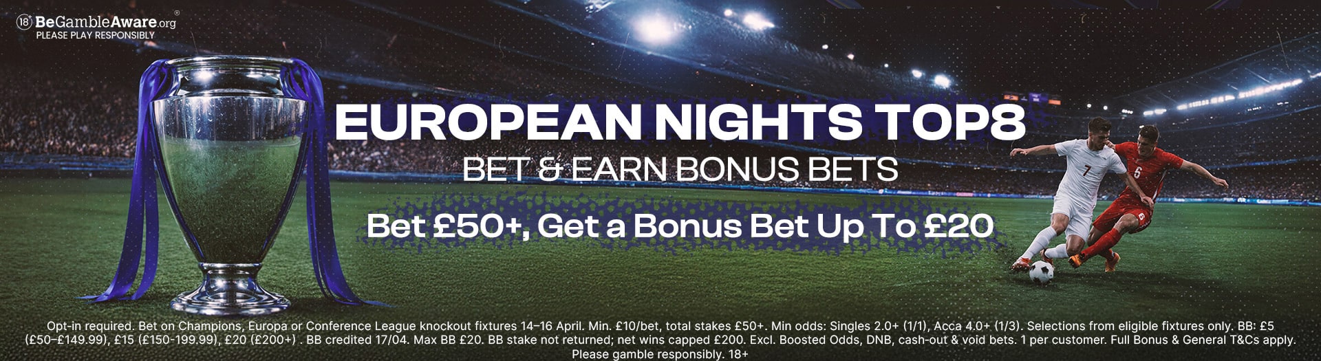 • Minimum total qualifying stakes: £50 across one or more bets
